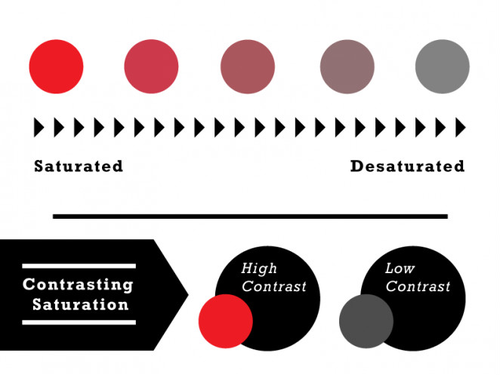 顏色的濃度(英: The Intensity of A Color),也被稱為色彩飽和度(英: Saturation)。純粹明亮的顏色,他的飽和度狀態(tài)就是100%;越是接近灰色,他的飽和度也就越低。明亮的色調(diào)和黑色一起使用的話,就能產(chǎn)生特別的引人注意的效果。在設(shè)計中可以作為一個特別的組成部分,為了強調(diào)出重要的部分,一定要謹慎的使用。