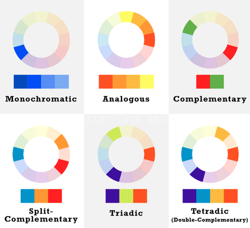 1.互補色(英: Complementary):他指的是選擇色輪上面對面的那一組顏色,例如紅和綠,藍和橙?;パa色的特點是高對比度,所以如何掌握顏色之間的平衡,也就成了難點。